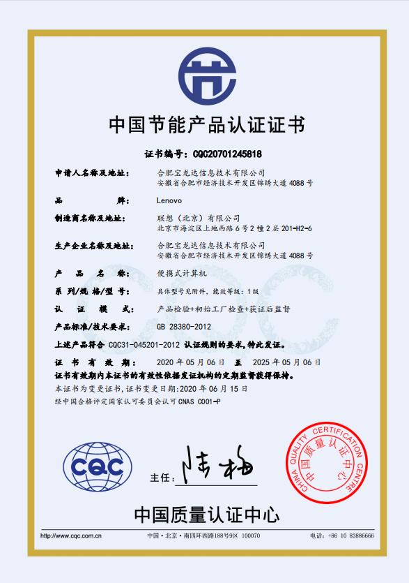 中國節(jié)能產(chǎn)品認(rèn)證證書掃描件  :